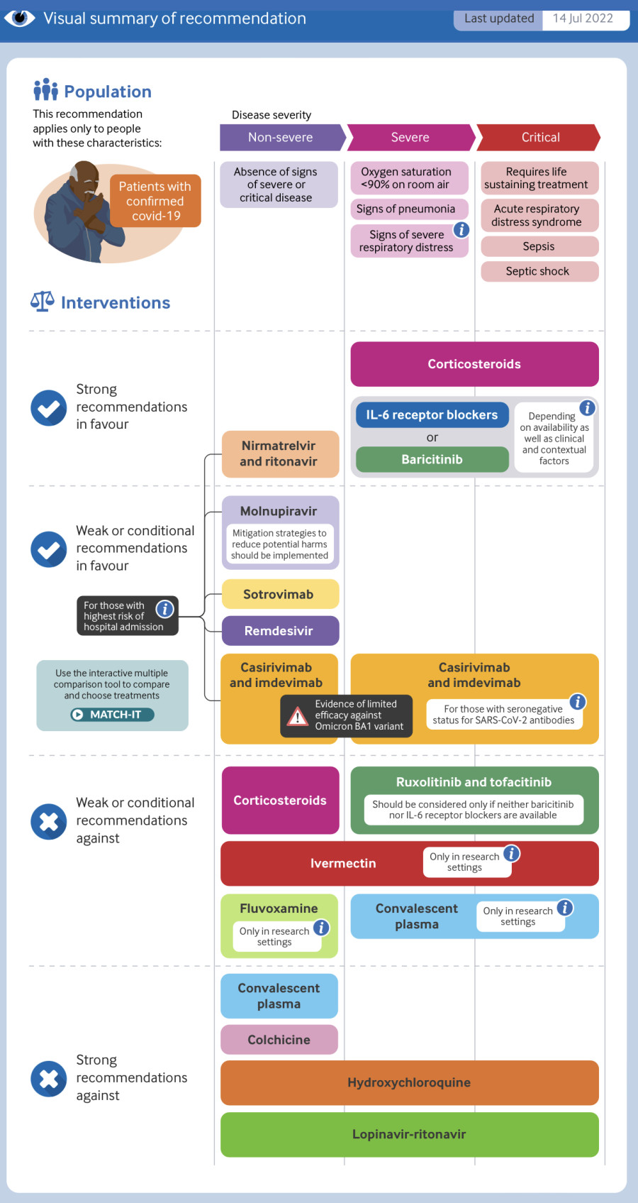 Hier ist eine interaktive Liste des British Medical Journal über den Stand der Dinge bei COVID-19 Behandlung.