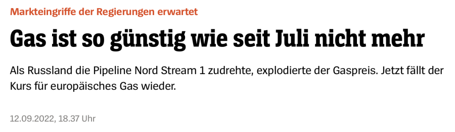 Daher bin ich mir manchmal unsicher ob ich optimistisch oder naiv bin. Nehmen wir den Preisanstieg bei Gas und Strom. Ich kann nicht glauben, dass Anstiege von mehreren hundert Prozent ungefiltert auf die Bevölkerung abgewälzt werden. Besonders wenn die Preise im Einkauf nicht um so viele Prozentpunkte gestiegen sind. Der Spiegel meldete gestern, dass die Gaspreise jetzt so niedrig sein wie im Juli 2022. Das ist doch schon mal was…